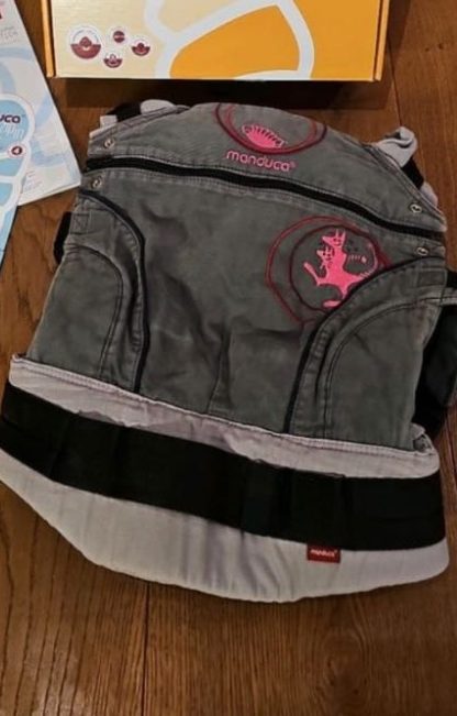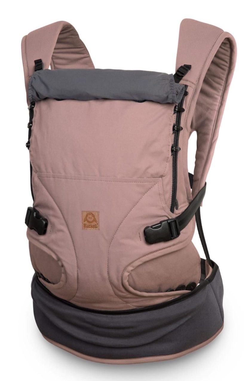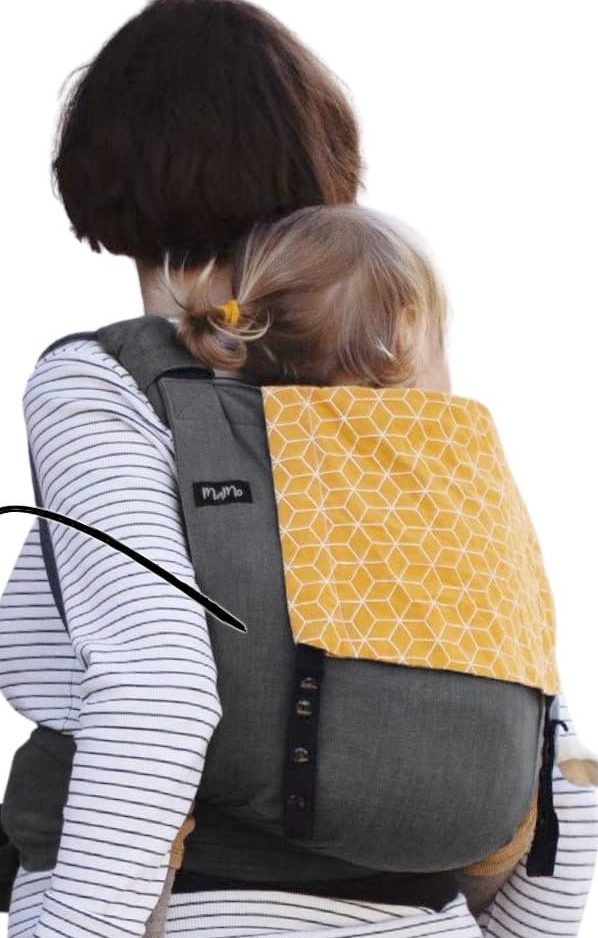 - modulare Trage mit einzeln erhältlichen Teilen, bestehend aus Schultergurten, Bauchgurt, Nackenstütze und Beuteln in verschiedenen Größen und Farben