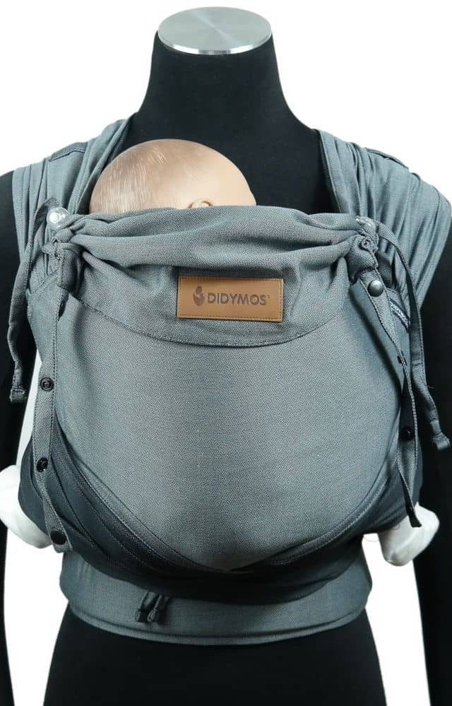 Die Tragen werden mit Schnalle zum Verschließen des Bauchgurts und Tuch zum Binden verschlossen.